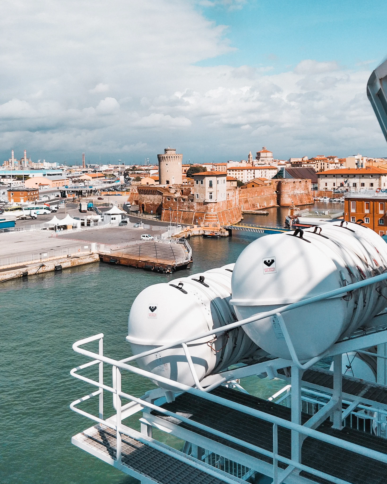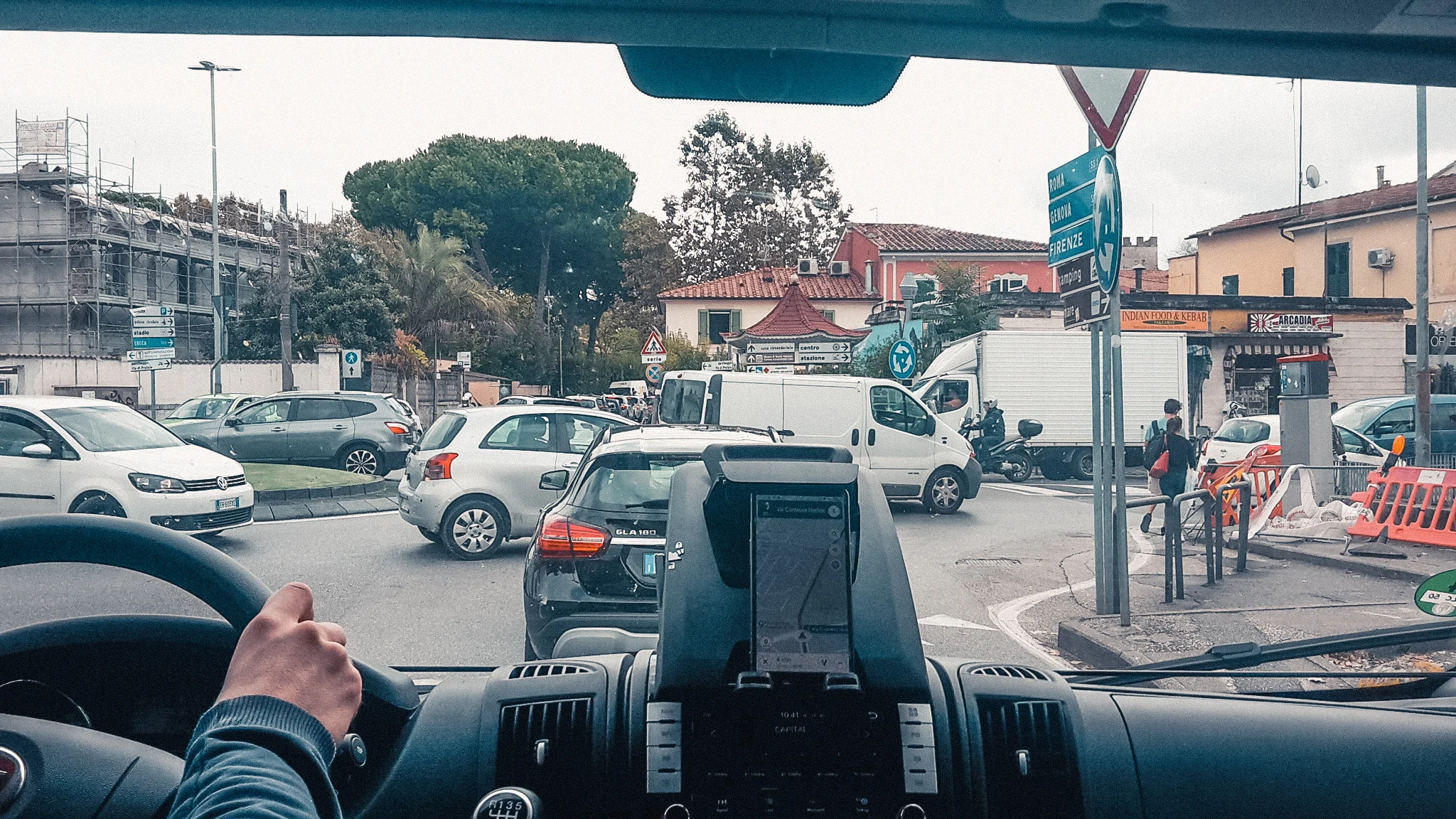 Auf dem Weg dorthin liegt Pisa, wo wir, wenn wir schon mal da sind, einen kurzen Zwischenstopp einlegen wollen. Tim kann sich von seinem letzten Besuch hier dunkel an einen kostenlosen Parkplatz in Zentrumsnähe erinnern. Auf der Suche danach stecken wir aber plötzlich irgendwo inmitten der verwinkelten, überfüllten Altstadt, deren viel zu enge Gassen so überhaupt nicht für Karl den Mittelgroßen geeignet sind. Unter viel und lautem Fluchen manövriert uns Tim aber unfallfrei bis zu einer Parklücke, die gerade lang genug für Karl ist. Von dort aus ist es dann nur noch ein Katzensprung zum touristischen Zentrum Pisas.