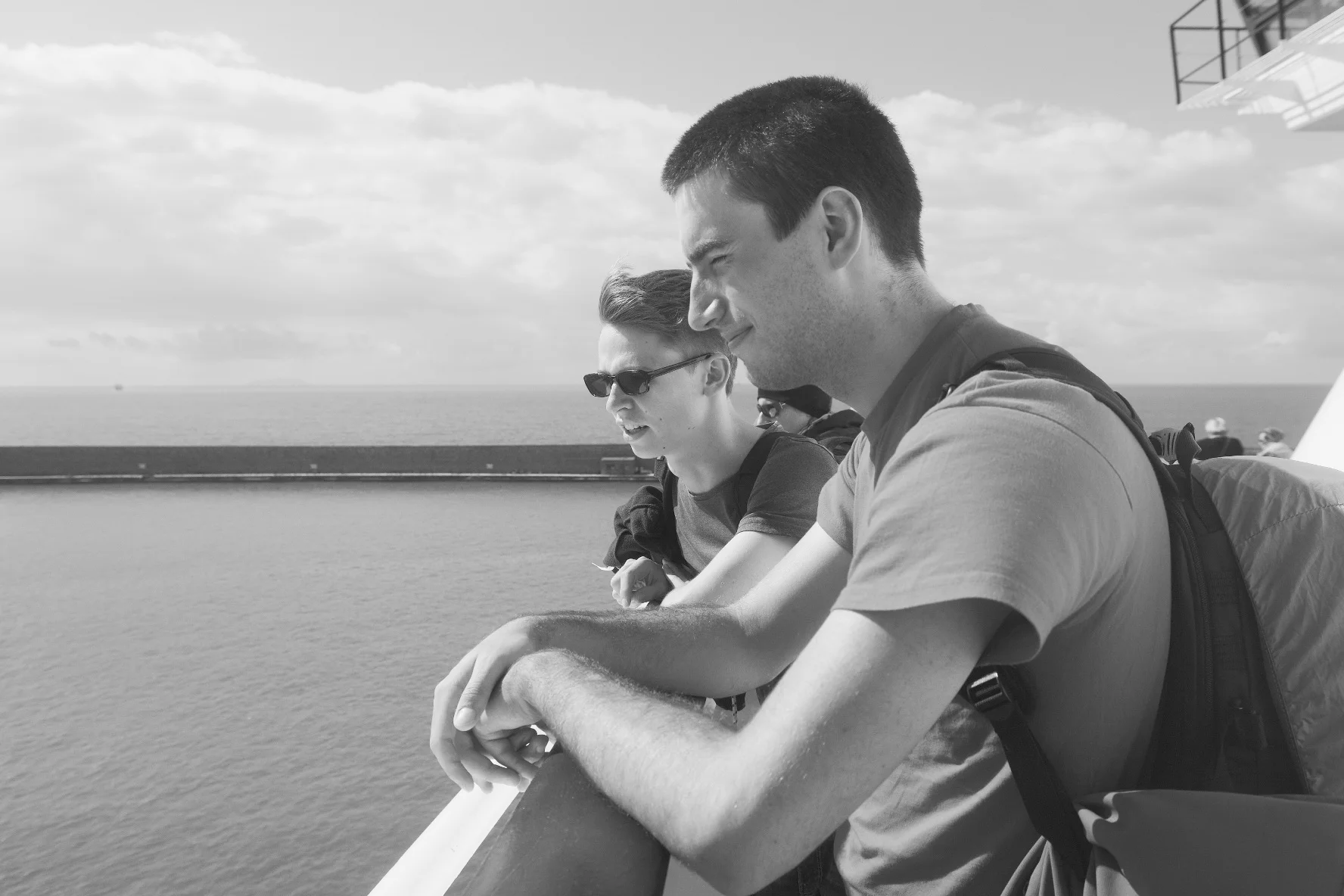 Nach einer kurzen Erkundung des Schiffs verbringen wir den größten Teil der Fahrt auf dem Seitendeck, wo Richard Bilder bearbeitet, Tim WhatsApp-Nachrichten vorschreibt, die er dann an Land versenden will, und ich versuche, mit dem Block etwas aufzuholen.