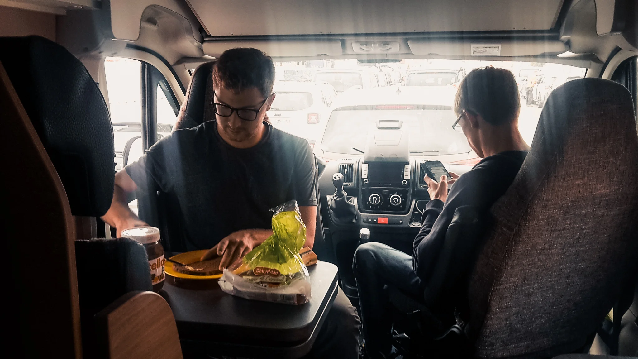 Wie gestern klingelt um acht der Wecker. Aber da wir gestern noch einkaufen waren, können wir heute erst noch ganz entspannt in Karls Sitzecke frühstücken, ehe wir in Richtung Fähre aufbrechen.