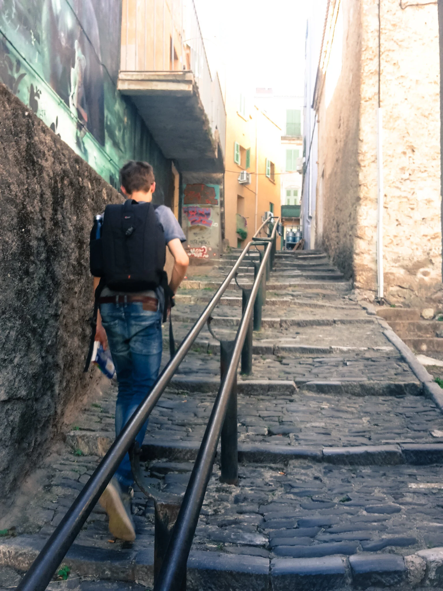 Durch die schmalen Gassen schieben wir uns an geschichtsträchtigen Häusern vorbei zur Citadelle hinauf, von wo aus wir uns einen großartigen Ausblick auf die Stadt und die umliegenden Täler erhoffen. Leider ist nur der untere Teil der Befestigungsanlage zugänglich, von wo aus man gerade mal einen guten Blick auf die zehn Meter hohen Steinmauern hat. Günstigerweise haben die Korsen direkt neben ihrer Citadelle einen Schutthaufen aufgeschüttet, der in etwa so hoch ist, wie der obere Teil der Citadelle, sodass wir von hier aus doch noch einen Blick auf die Stadt erhaschen können. Absolut nicht lohnenswert, wie Richard völlig korrekt feststellt, Cortes ist eine Stadt, die man besser von unten anschauen sollte.