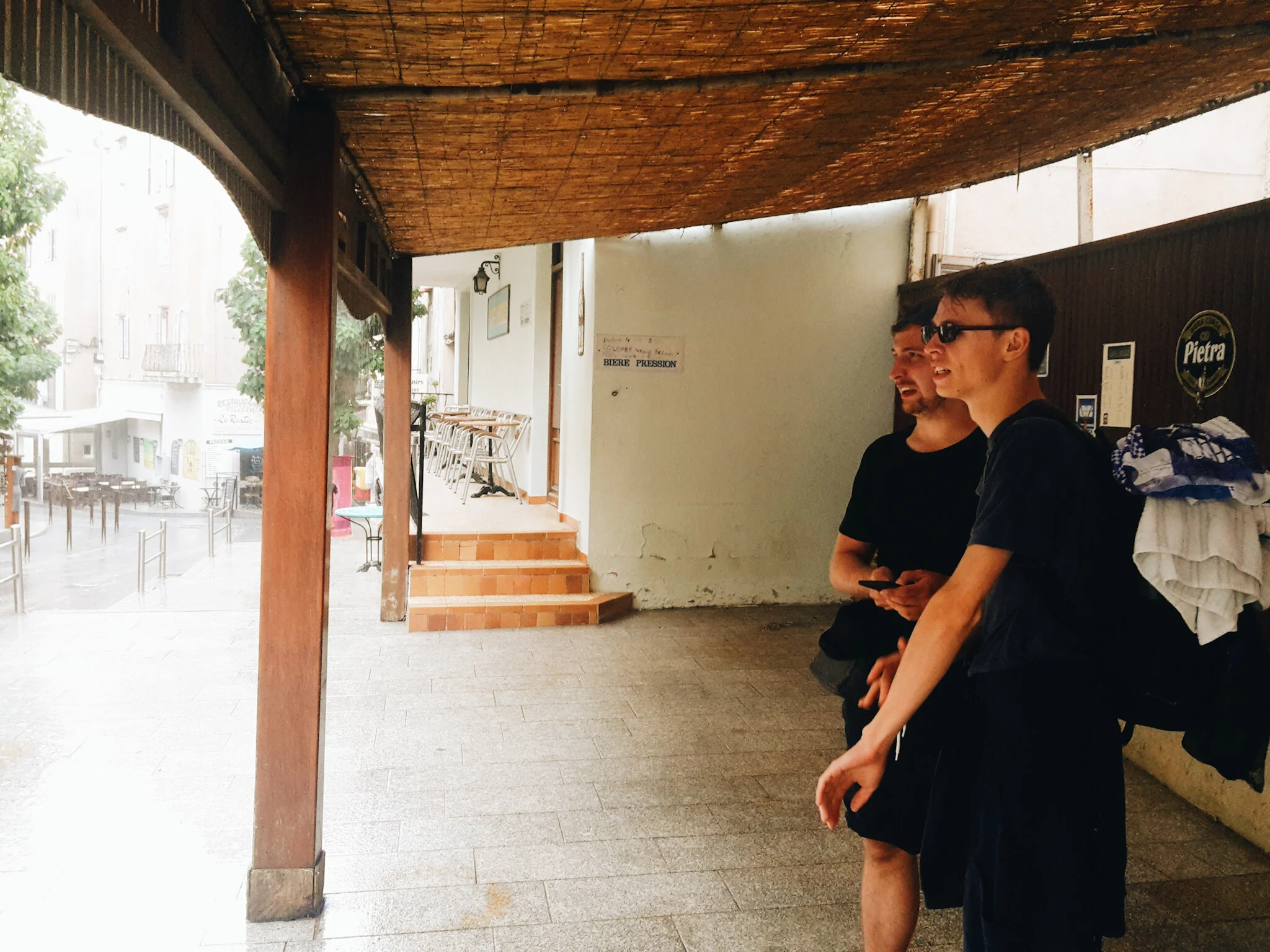 Wir erklimmen die Stadt über eine Zugbrücke, winden uns durch die genuesischen Gässchen, als es plötzlich zu tröpfeln beginnt. Aus den Tropfen werden Kannen, es gießt in Strömen, und so plötzlich es kam, so schwindet es wieder.